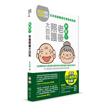 當我們看到爸爸媽媽的頭髮變白、視力耳力不再靈光、智力減退、慢性病上身,更甚者連飲食排泄等基本行為都無法自理,除了基本陪伴,要如何以專業的方式照料、維持有品質的日常生活?本書作者王天明為日本名古屋大學腦神經外科博士,長年參與日本長期照護機構的顧問工作。他曾在短短數年內陸續送走三位至親離世,因有感坊間極缺乏老人照護的專業資訊,於是將在日本研習多年、且自身實踐過的照護常識,以繪圖分解成細膩、簡明易懂的居家指導,針對長者不同障礙程度提供精準對策,引導照顧者採用最科學省力的照護方式,讓照顧者與被照顧者雙方都能將壓力減至最低,重拾尊嚴而安適的生活。